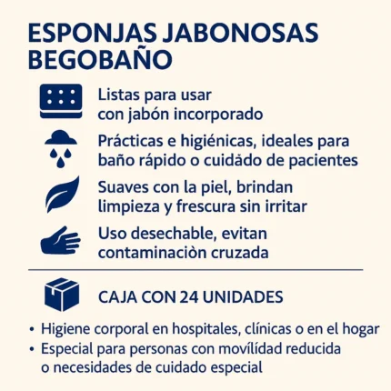 Esponjas Jabonosas Begobaño ofrecen una limpieza práctica y eficiente gracias a su jabón integrado. Su diseño ergonómico y suave permite una protección delicada de la piel, ideal para todo tipo de piel, incluso las más sensibles. Son perfectas para el uso diario en la ducha o bañera, proporcionando comodidad sin necesidad de añadir jabón adicional. El paquete de 24 unidades asegura un suministro prolongado y económico para toda la familia.
