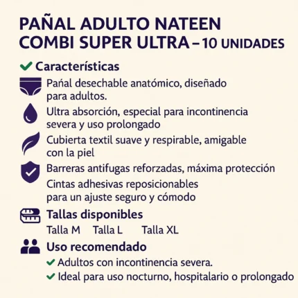 Pañal Adulto Nateen Combi Super Ultra Talla L 10 Unidades