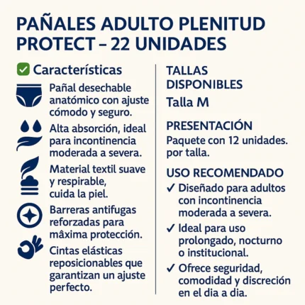 ofrece alta absorción, ajuste seguro y protección antifugas para mayor comodidad. Su material suave y transpirable cuida la piel, mientras que el indicador de humedad facilita el cambio oportuno. Ideal para adultos con incontinencia, movilidad reducida o en recuperación, brinda seguridad y bienestar en el uso diario.