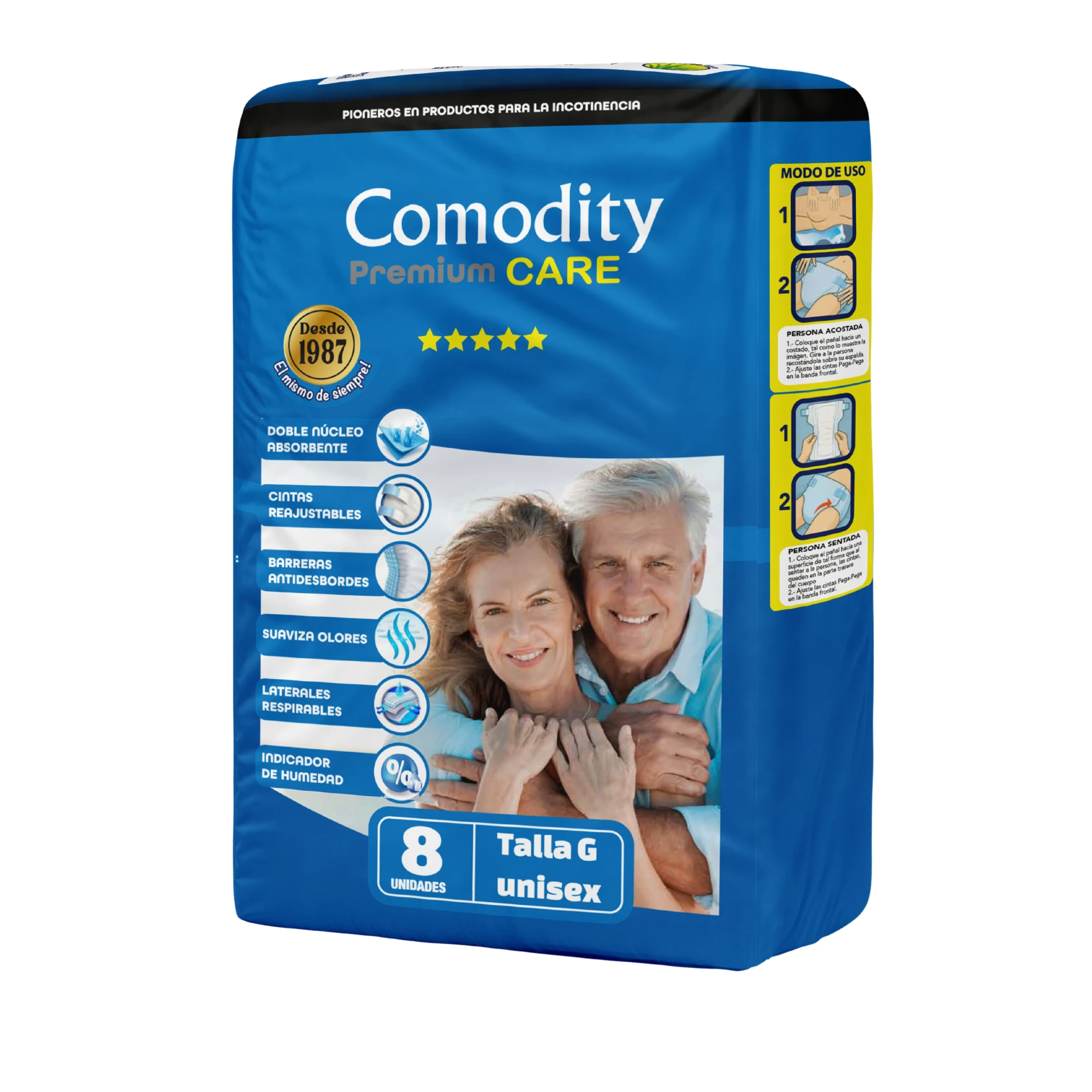 El Pañal Comodity Premium Adulto Talla G 8U es una excelente opción para quienes requieren un producto confiable y cómodo para el manejo de la incontinencia, garantizando protección, seguridad y bienestar en todo momento.
